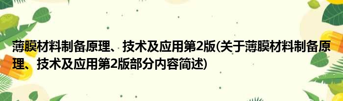 薄膜材料制备原理、技术及应用第2版(关于薄膜材料制备原理、技术及应用第2版部分内容简述)