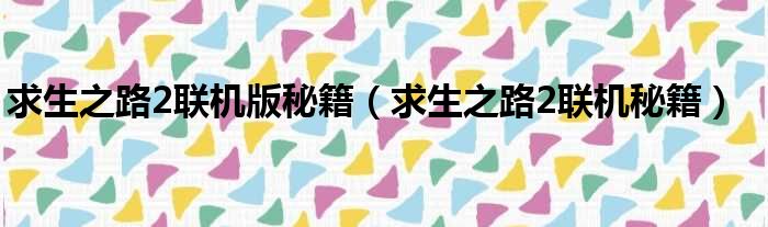 求生之路2联机版秘籍(求生之路2联机秘籍)