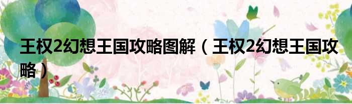 王权2幻想王国攻略图解(王权2幻想王国攻略)