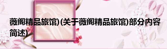 薇阁精品旅馆)(关于薇阁精品旅馆)部分内容简述)