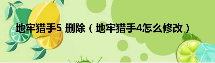 地牢猎手5 删除(地牢猎手4怎么修改)