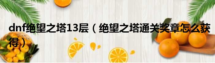 dnf绝望之塔13层(绝望之塔通关奖章怎么获得)