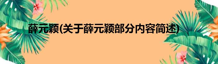 导读 大家好,今天小方来说说一篇关于薛元颖,关于薛元颖部分内容简述的文章,那么现在就为大家来简单介绍下,希望对各位小伙伴们有所帮助。