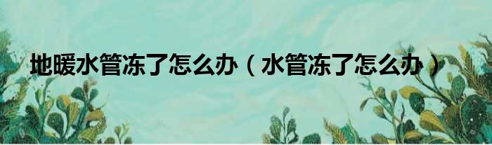 地暖水管冻了怎么办(水管冻了怎么办)