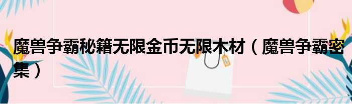 魔兽争霸秘籍无限金币无限木材(魔兽争霸密集)