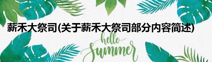 薪禾大祭司(关于薪禾大祭司部分内容简述)