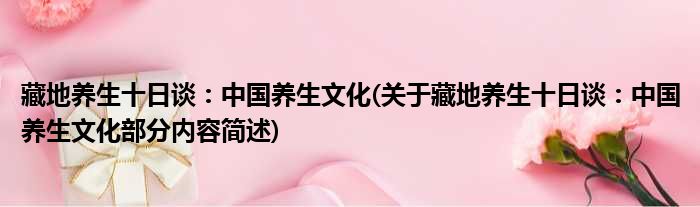 导读 大家好,今天小方来说说一篇关于藏地养生十日谈:中国养生文化,关于藏地养生十日谈:中国养生文化部分内容简述的文章,那么现在就为大家来