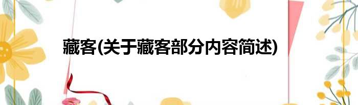导读 大家好,今天小方来说说一篇关于藏客,关于藏客部分内容简述的文章,那么现在就为大家来简单介绍下,希望对各位小伙伴们有所帮助。