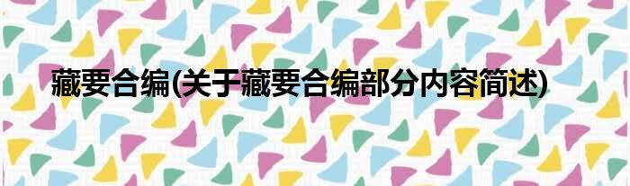 导读 大家好,今天小方来说说一篇关于藏要合编,关于藏要合编部分内容简述的文章,那么现在就为大家来简单介绍下,希望对各位小伙伴们有所帮助。