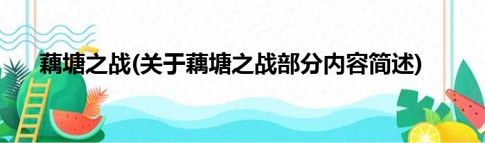 导读 大家好,今天小方来说说一篇关于藕塘之战,关于藕塘之战部分内容简述的文章,那么现在就为大家来简单介绍下,希望对各位小伙伴们有所帮助。