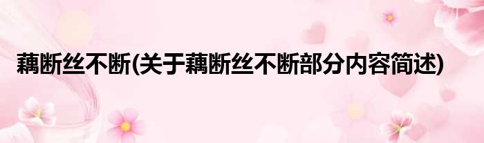 藕断丝不断(关于藕断丝不断部分内容简述)