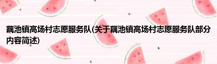 藕池镇高场村志愿服务队(关于藕池镇高场村志愿服务队部分内容简述)