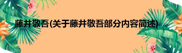 藤井敬吾(关于藤井敬吾部分内容简述)