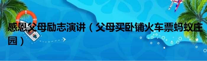 大家好,小爱来为大家解答以上问题。感恩父母励志演讲,父母买卧铺火车票蚂蚁庄园很多人还不知道,现在让我们一起来看看吧!