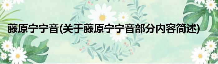 藤原宁宁音(关于藤原宁宁音部分内容简述)