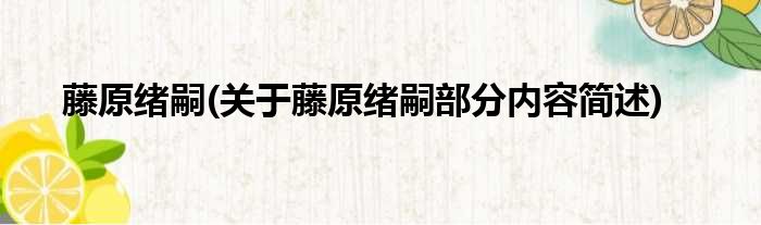 藤原绪嗣(关于藤原绪嗣部分内容简述)