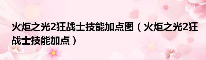 火炬之光2狂战士技能加点图(火炬之光2狂战士技能加点)