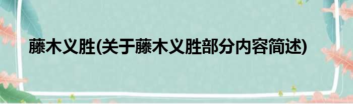 导读 大家好,今天小方来说说一篇关于藤木义胜,关于藤木义胜部分内容简述的文章,那么现在就为大家来简单介绍下,希望对各位小伙伴们有所帮助。