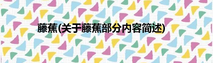 导读 大家好,今天小方来说说一篇关于藤蕉,关于藤蕉部分内容简述的文章,那么现在就为大家来简单介绍下,希望对各位小伙伴们有所帮助。