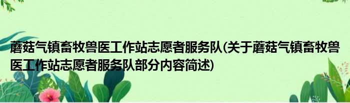 蘑菇气镇畜牧兽医工作站志愿者服务队(关于蘑菇气镇畜牧兽医工作站志愿者服务队部分内容简述)