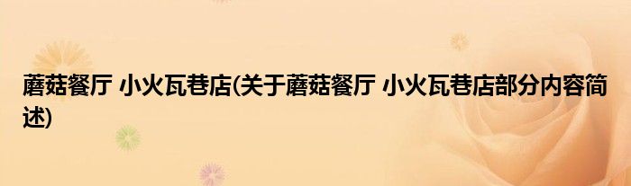 蘑菇餐厅 小火瓦巷店(关于蘑菇餐厅 小火瓦巷店部分内容简述)