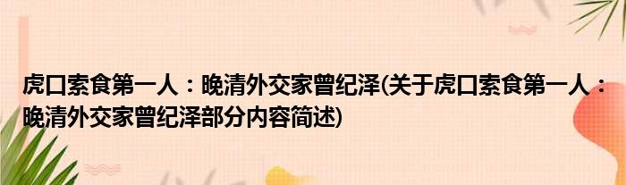 虎口索食第一人:晚清外交家曾纪泽(关于虎口索食第一人:晚清外交家曾纪泽部分内容简述)