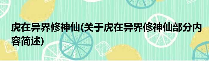 虎在异界修神仙(关于虎在异界修神仙部分内容简述)