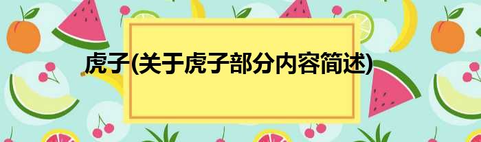 导读 大家好,今天小方来说说一篇关于虎子,关于虎子部分内容简述的文章,那么现在就为大家来简单介绍下,希望对各位小伙伴们有所帮助。