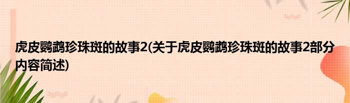 虎皮鹦鹉珍珠斑的故事2(关于虎皮鹦鹉珍珠斑的故事2部分内容简述)