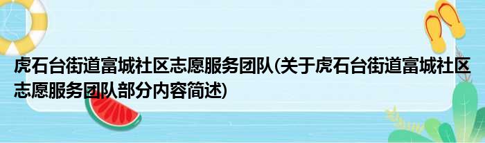 虎石台街道富城社区志愿服务团队(关于虎石台街道富城社区志愿服务团队部分内容简述)