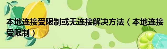 本地连接受限制或无连接解决方法(本地连接受限制)