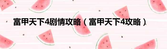 大家好,小爱来为大家解答以上问题。富甲天下4剧情攻略,富甲天下4攻略很多人还不知道,现在让我们一起来看看吧!