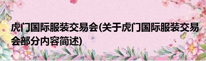 虎门国际服装交易会(关于虎门国际服装交易会部分内容简述)