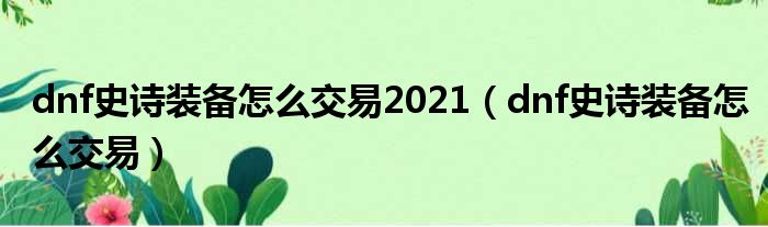dnf史诗装备怎么交易2021(dnf史诗装备怎么交易)