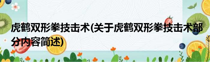 虎鹤双形拳技击术(关于虎鹤双形拳技击术部分内容简述)