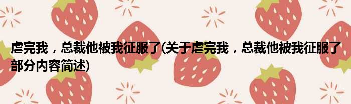 导读 大家好,今天小方来说说一篇关于虐完我,总裁他被我征服了,关于虐完我,总裁他被我征服了部分内容简述的文章,那么现在就为大家来简单介绍