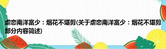 虐恋南洋富少:烟花不堪剪(关于虐恋南洋富少:烟花不堪剪部分内容简述)