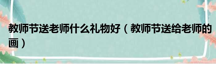 大家好,小爱来为大家解答以上问题。教师节送老师什么礼物好,教师节送给老师的画很多人还不知道,现在让我们一起来看看吧!