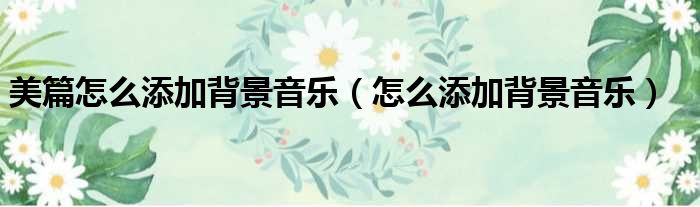 美篇怎么添加背景音乐(怎么添加背景音乐)