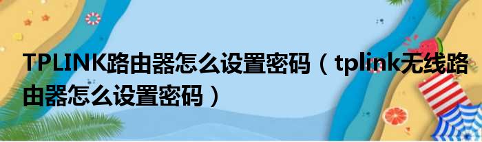 TPLINK路由器怎么设置密码(tplink无线路由器怎么设置密码)