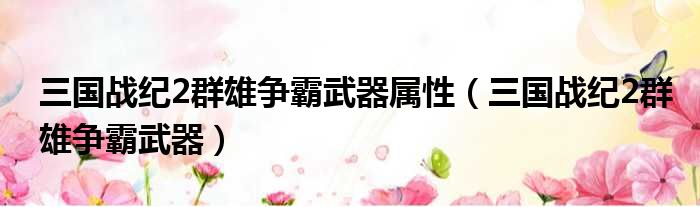 三国战纪2群雄争霸武器属性(三国战纪2群雄争霸武器)