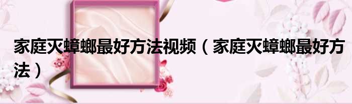 家庭灭蟑螂最好方法视频(家庭灭蟑螂最好方法)