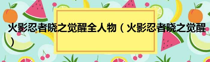 火影忍者晓之觉醒全人物(火影忍者晓之觉醒)