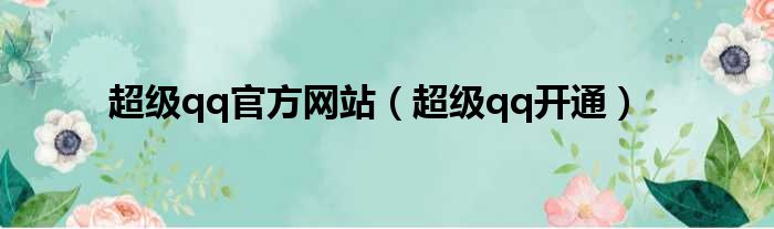大家好,小爱来为大家解答以上问题。超级qq官方网站,超级qq开通很多人还不知道,现在让我们一起来看看吧!
