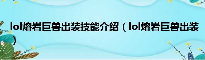 大家好,小爱来为大家解答以上问题。lol熔岩巨兽出装技能介绍,lol熔岩巨兽出装很多人还不知道,现在让我们一起来看看吧!