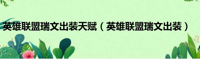 英雄联盟瑞文出装天赋(英雄联盟瑞文出装)