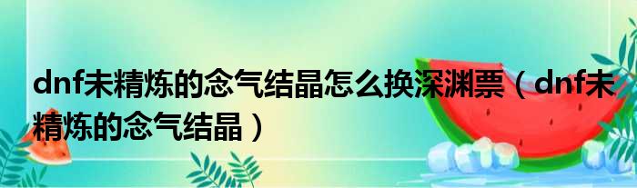 大家好,小爱来为大家解答以上问题。dnf未精炼的念气结晶怎么换深渊票,dnf未精炼的念气结晶很多人还不知道,现在让我们一起来看看吧!