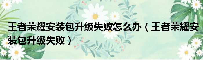 王者荣耀安装包升级失败怎么办(王者荣耀安装包升级失败)