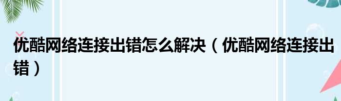 优酷网络连接出错怎么解决(优酷网络连接出错)