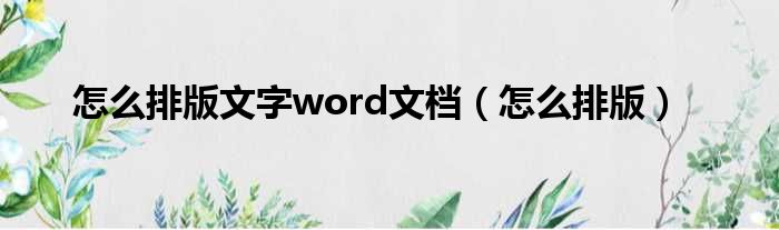怎么排版文字word文档(怎么排版)